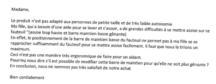 It is very important to emphasize that in addition to being an ingenious solution for people with physical disabilities such as mine, the treatment I receive from your company is professional, warm and considerate, which I am not usually used to.